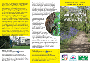 Our fourth featured Wellbeing Walks leaflet outlines routes that start at Padarn Surgery, Aberystwyth. These Wellbeing Walks form part of a series of routes that have been produced by Rural Health and Care Wales and the Greener Aberystwyth Group, starting at health centres. The aim of the Wellbeing Walks are to encourage people to walk and spend time in nature, noting the many positive impacts this has on physical and mental health and wellbeing.